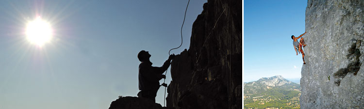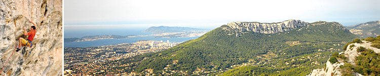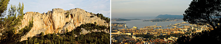 proposent 43 itinéraires du niveau 3 au niveau 8b sur les hauteurs de Hyères. On y trouve